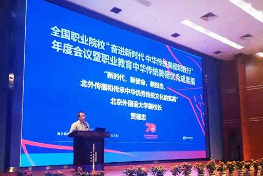 2019年9月7日,由中国职业技术教育学会高等职业技术教育分会主办,广东轻工职业技术学院承办的“全国职业院校‘奋进新时代 中华传统美德职教行’年度会议暨职业教育中华传统美德优秀成果展”在佛山召开,中国职教学会会长、全国政协委员、教育部原副部长鲁昕出席此次年度会议。北京外国语大学副校长贾德忠应邀出席并做主题发言。